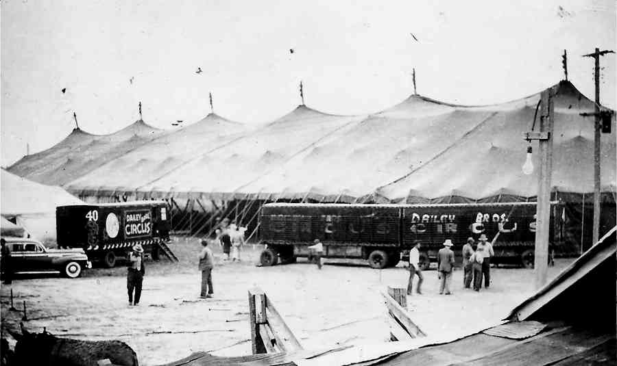 Circus owner Ben Davenport began his circus career in 1914, he worked as an animal trainer, had his own touring animal exhibits, wrestled bears and operated Medicine shows. In 1935 with only two truck Ben took out a "sidewall" (no tent), circus which he named "Davenport Society Circus". The small circus did well and grew, Davenport operated under the name until 1939. For the 1940 season Ben and his wife Eva renamed the truck show the "Dailey Bros. Circus" they then purchased their first elephant "Nemo" from Honest Bill Newton's circus, they later bought a second elephant "Rosie" from Newton . After the opening pains of the first year, the 1941 season was very successful, the show had added acts and front end personnel, the circus wintered that year in Aransas Pass, Texas. For the 1942 season the circus grew to sixteen trucks. The Second World War had begun and people found circuses to be a needed diversion from the war. The Dailey Bros Circus focused on performing in towns which had large defence plants where the money would be plentiful. At the close the circus winterd in La Grange, TX. During the winter of 1943-1944 Daven began buying railroad cars from various circuses and carnival and for the 1944 season Ben converted his truck show to a 10 car railroad circus. During the course of the 1944 season, Ben purchased more rail cars to be used the following year. The circus opened that year in Yoakum, TX. In 1945 the circus had grown to a 15 car railroad show, also Ben opened a second unit the "Austin Bros. Circus. The Circus continued untill it closed 1950. After the close of the Dailey Bros. railroad circus, Davenport took out several more truck shows, the Campa Bros. Circus in 1951, Wallace Bros. Circus in 1952 and Diano Bros. Circus in 1953.
