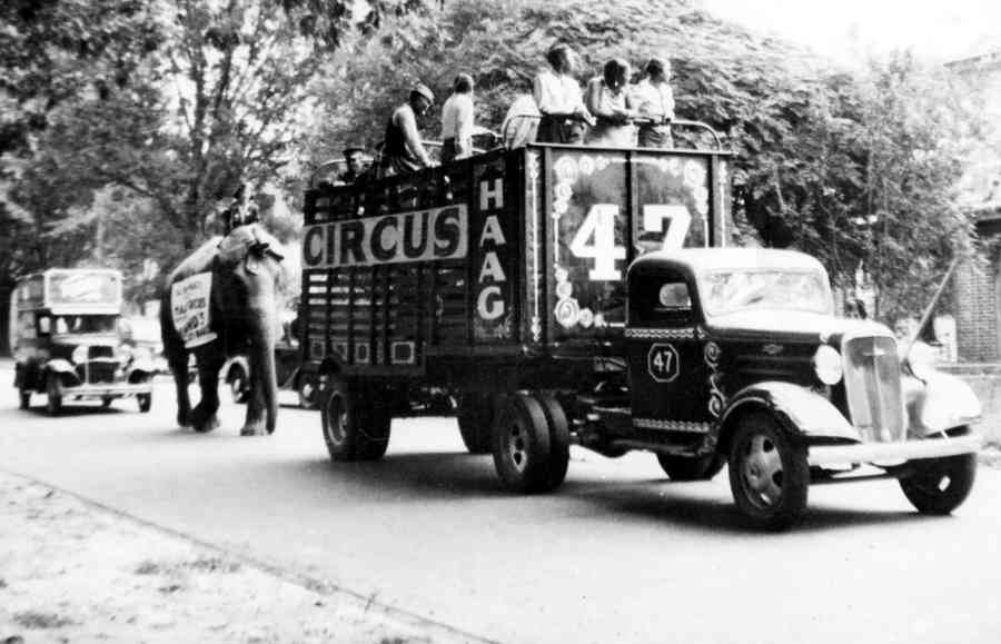The Mighty Haag Circus was owned by Ernest Haag and was one of the best known southern circuses. The show started in the 1890s in Louisiana as a wagon show. The circus continued for forty more years. In 1909 the show moved from wagons to rails. Hard times hit in 1914 forcing the show to return to wagons. In 1918 the circus began adding trucks as their transportations. By 1929 all wagons had been replaced by Trucks. Ernest Haag died in 1935, his circus continued to show it's southern route until 1938.
