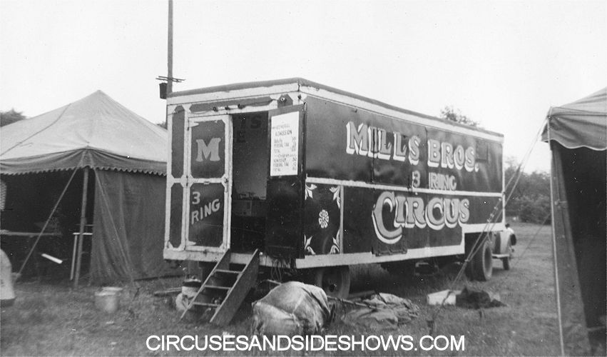 The Mills Bros. Circus was owned by brothers Jake, Jack and Harry Mills who all had a background in the circus industry. The brothers purchased the Richard Bros. Circus and on April 20, 1940 the Mill Bros. Circus opened in Tallulah, La., the show ran continuously until 1966. The show was a mid-sized truck show and toured the Eastern and Mid West United States. The circus developed a wonderful reputation with the public and it's employees alike. The circus carried a large, clean and appealing cookhouse on the show. The Mills took a great deal of pride in their cookhouse and visiting showpeople were always invited to have a meal. During the first half of the the 20 century there were many smaller "grift shows" on the road, which gave the industry a bad name and cause many patrons to be sceptical of all circuses. The Mills brothers pioneered using local sponsors (civic and fraternal organizations), to sell tickets and promote the show before it's arrival. The sponsoring organization received a percentage of the ticket sales, and many became dependant on the circus as an annual fund raiser. Buying tickets from local people and organizations reassured the public and bolstered the credibility of the circus' name. The use of sponsors was very successful and soon most circuses adopted this system. After the death of circus owner Paul M. Lewis the Mills brothers purchased the Lewis Bros Circus from Paul's widow and added the equipment to the Mills Bros. inventory. The Mills brothers were responsible for importing many circus acts and circus families into the United States, some of the decedents of these families still perform in U.S. circuses today. In 1966 the circus was sold to Sid Kellner who started the James Bros. Circus. Jack Mills Died July 20, 1974