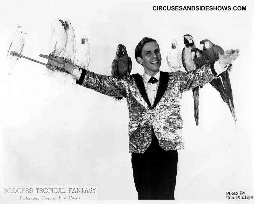 William Merle "Billy" Rodgers was born Oct.. 18, 1934, in Orwell, Ohio, he was the son of Merle Clayton Rodgers and Zella Charlotte (Jones) Rodgers. Billy's father was a letter carrier and passed away when Billy was only 10 years old. As a child Billy saw several circuses with his parents and became fascinated with the aerial acts, he thought "that's what I want to do". He put up a trapeze in his backyard and began practicing on his own. Billy's fascination continued through his young years and into his college age. While attending Kent State University, he met a magazine salesman and asked him if he knew of any circus magazines. The salesman told him that there was one called the "Billboard", but he did not know where to buy one. Billy found it was available at the bus station in Warren, Ohio, so he drove to Warren and bought one. In that issue there was an ad placed by a circus, who were hiring riggers, big top help and ushers. Billy applied for an usher position and was hired, he then quit college, took the train to Macon, Georgia and in 1954 joined the King Bros. Circus at $14.00 dollars a week and room and board. The circus was co-owned by Floyd King and Arnold Maley. Rodgers worked hard that first season, helping put up the big top, driving stakes, carrying seat boards and everything else it took to move a circus. He was soon noticed by Esma Maley a former aerialist and wife of co-owner Arnold. Esma took a liking to the young man and promoted him to the wardrobe department, which was an easier job and offered better accommodations. Soon the circus needed a clown and Billy began clowning. Billy's fascination with aerial acts had not stopped and with the assistance of Esma he began practicing the "cloud swing" in between performances. During the season several acts left the show, so the Billy's cloud swing act was introduced into the performance. Rodgers' dream had come true, he was now a circus aerialist, earning $ 20.00 a week. Billy continued to perfect his cloud swing and began working on a revolving ladder act. In 1959 his good friend Kenny Dodd began working with him on the revolving ladder. Billy continued to perform at circuses, shrine dates and fairs, then during the fall of 1969 Rodgers was involved in a serious automobile accident which left him partially crippled and ended his aerial career. After the accident Billy formed a bird act for which he became very well known. He once again traveled throughout the country performing at circuses, parks and fairs with his trained birds. After Billy's retirement from the road he opened the "Pirates Treasure Cove" in Gibsonton, Florida, a store which sold circus wardrobe related products, (rhinestones, sequins, tights Etc.). The store became very popular with showpeople. Billy also became very involved with the International Independent Showmen's Association and the annual Showmen's Circus. Zella, Billy's mother lived in Gibsonton with her son in her later years. She injoyed life, and would always be seen with Billy at the Showmen's Club events and parties. Zella passed away on August 3, 2001. William Merle "Billy" Rodgers died at age 74, November. 24, 2008 of colon cancer.
